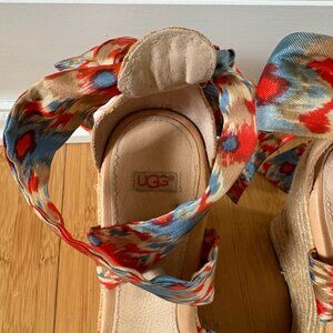 UGG Lucianna Santorini Ikat Silk Straps Jute Wedge Sandals Heels in good condition