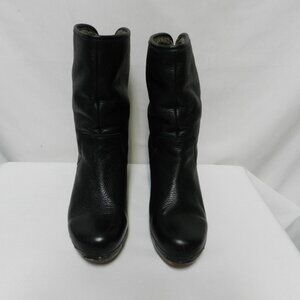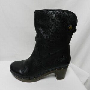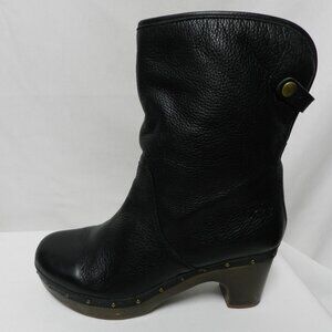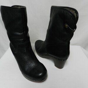UGG Lynnea Leather Shearling lined fold-over mid calf clog boots black Size 10