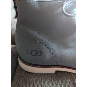 Elevate your shoe game with these stylish UGG Australia ankle boots. Made with premium leather and suede, these boots feature a round toe with a lace-up closure for a comfortable fit. Perfect for travel, casual outings, or formal events, these boots are a versatile addition to any wardrobe. With a cushioned insole and UGG logo on the side, these boots provide both comfort and style. The gray color and solid pattern make them easy to pair with any outfit. Available in a size 9, these boots have a standard width and are perfect for any man looking for a stylish and comfortable footwear option.