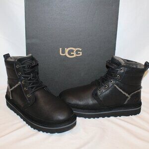 UGG MEN'S LEATHER HIGH HERITAGE LEATHER LACE UP CHUKKA BOOTS BLACK GRAY NEW