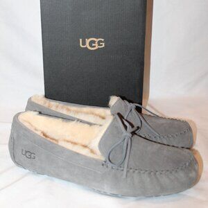 UGG MEN'S OLSEN SUEDE SHEARLING LINED SLIP ON SLIPPERS GRAY