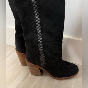 UGG Maeva Suede Knee High Boots Black Whipstitched Leather SZ 7 Runs Small