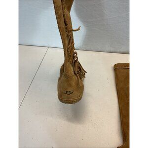 UGG Mammoth Moccasin Brown Sz 9 Suede Leather Fringed Tall Boots Festival Boho