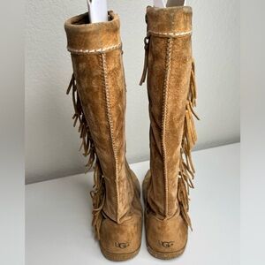 UGG Mammoth Moccasin Suede Leather Tall Boot Fringe Size 9 Boho Festival