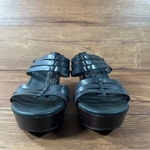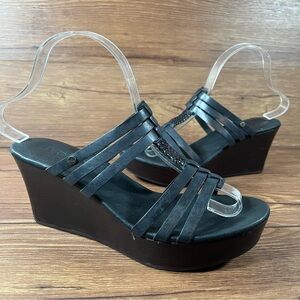 UGG Mattie Black Leather Slip-On Wedge Sandals Women’s Size 8 Shoes