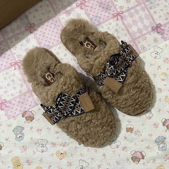 UGG Max Curly Shearling Bow Slip-On Slippers