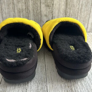 Extending the feeling of UGG to a spring-ready platform with lightweight puff uppers and bold graphic details, the Maxi Slide is a statement sandal featuring our signature sheepskin insole. Set on a maximalist 2.5" sole, it offers a leg-lengthening look and ultra-cushioned step. Pair with shorts, crop-tops, and more