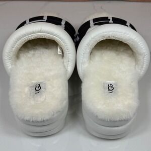 UGG Maxi Logo Slide White Black Fluffy Shearling Platform Sandals Womens size 7