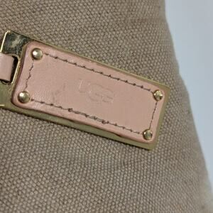 UGG Meena Tote Bag Jute Peach Leather Weekender Shoulder Purse Double Handle
