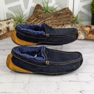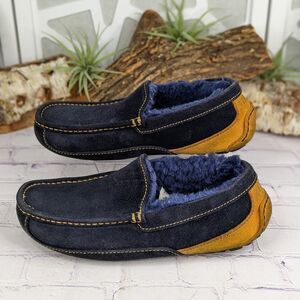 UGG Mens ASCOT Suede Shearling Lined Moccasin Slippers Blue/Yellow