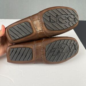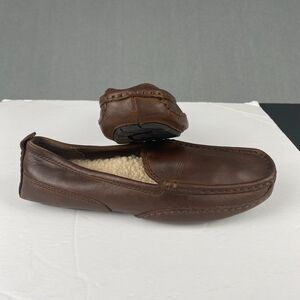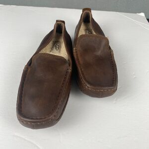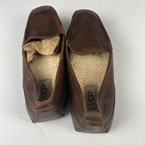 UGG Mens Ascot Leather Slippers Sheepskin Shearling Lined Brown S/N 5221 US 4