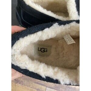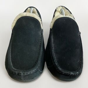 UGG Men’s Ascot Slippers Loafers Sz 13 Sherpa Lining BLACK Suede 1101110 EUC