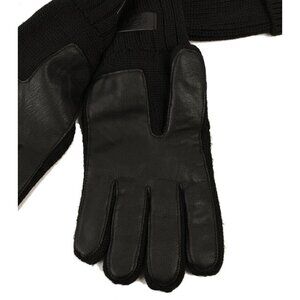 UGG Mens Black Ribbed Knit Beanie Leather Palm Patch Tech Glove Set L/XL NWT