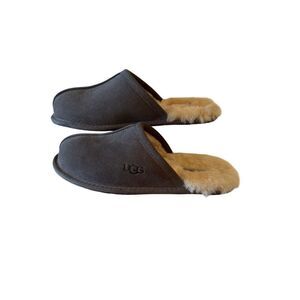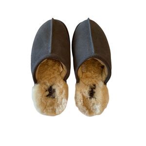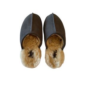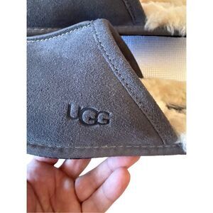 UGG Mens Gray Round Toe Sheepskin Suede Slip On Flat Slippers Size 9