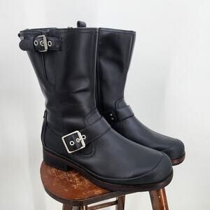 UGG Men's Randell Black Leather Waterproof Motorcycle Boots Size 11.5