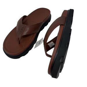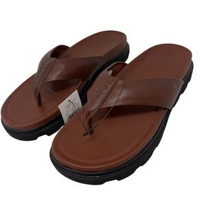 UGG Men's Size 12 Capitola Leather Flip Flops cognac Brown NWT