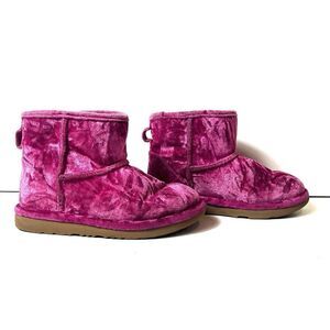 UGG Metallic Pink Faux Suede Winter Boots Little Girls 2 Faux Fur Lining Pull On