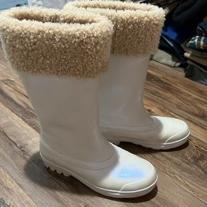 UGG Millcreek Iridescent White Rubber Cream Skeepskin Fleece Lined Rain Boots