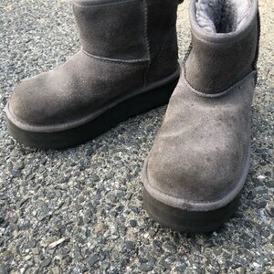 Keep your child's feet warm and stylish with these cozy gray boots. Perfect for any casual outing.