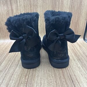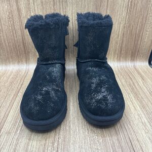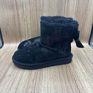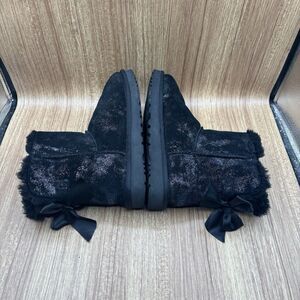 UGG Mini Bailey Bow Glimmer Metallic Suede Upper Black Satin Bow Women's Size 8