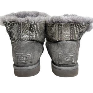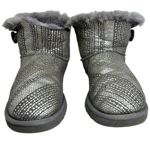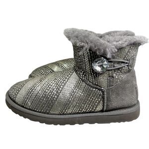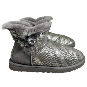 UGG Mini Bailey Button Bling Boots Women’s 9 Grey Sheepskin Lined Winter Shoes