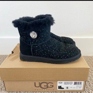 UGG Mini Bailey Button Crystal Bling Constellation Boots Black. Size 5