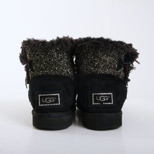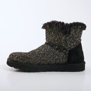 UGG Mini Bailey Button Fancy Tweed Boots in Black Women Size 8