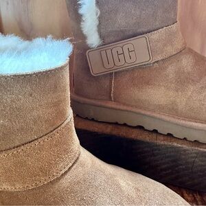 UGG Mini Bailey Chestnut Logo Strap Bootie Sz 6
