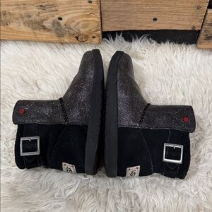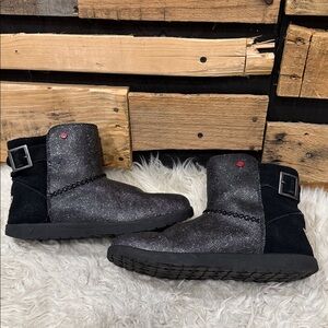 UGG Mini Cozy Boot Jl Heart Ivy, Metallic & Suede Black, Size 6
