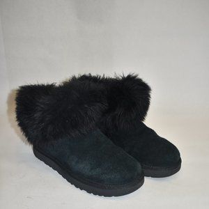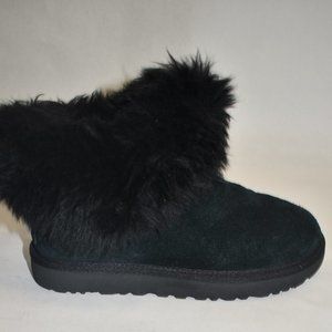 UGG Mini Fluff Collar Black Booties Sheepskin Suede US Size 6 1112491