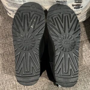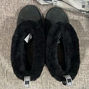UGG Mini Fluff Quilted Cuff Black Suede Sheepskin Ankle Boots