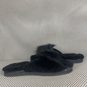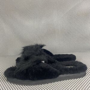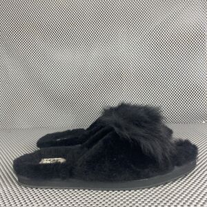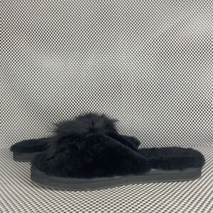 UGG Mirabelle Fluff Slide Slippers Womens 10 Black Front Bow Leather Sheepskin