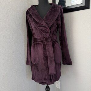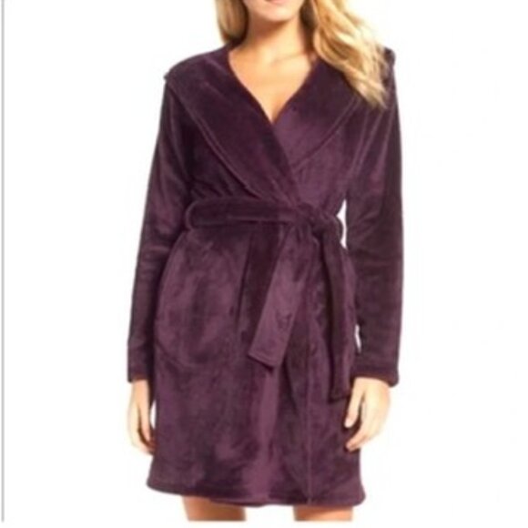 UGG Miranda Plush Belted Short Hooded Robe Port Purple XS