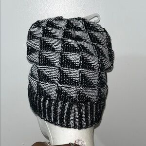 Elevate your winter look with this UGG beanie. Features a stylish black and gray stripe design. Perfect for cold weather.