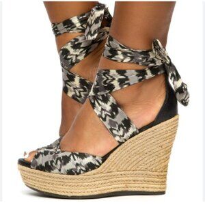 UGG Multicolor Lucianna Open Toe Ankle Wrap Jute Espadrille Wedge