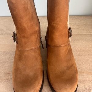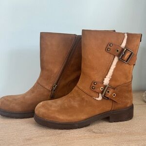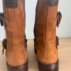UGG NIELS CHESTNUT WATERPROOF FUR TRIM MOTO BOOT