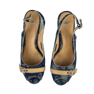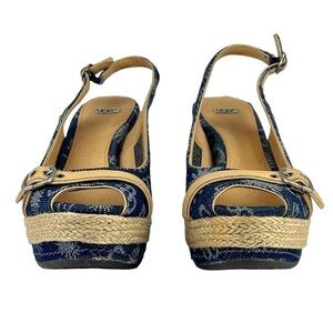 UGG NOELLA Y2K DENIM LOGO PEEP TOE SLINGBACK ESPADRILLE WEDGE HEELS