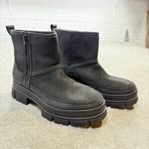 UGG NWOT Ashton Zip Waterproof Bootie Black Suede Chunky Heel Womens 10 Winter