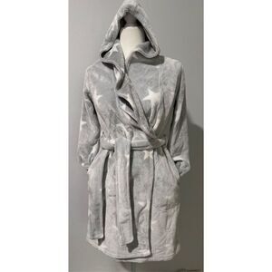 UGG NWOT Miranda Robe in grey white stars print Luxurious plush fleece with tie for waist hooded with pockets cozy XS