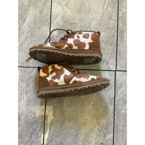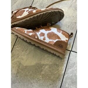 UGG Neumel Boots Shoes Mens Size 9 Brown White Cow Print Shearling Lined Lace Up