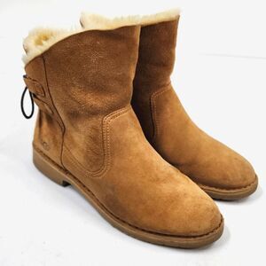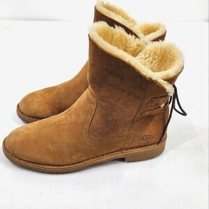 UGG Naiya Chestnut Suede Lace Back Ankle Boots Sheepskin Size 11M