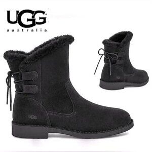 🆕UGG Naiyah Genuine Shearling Tie Bootie Ankle Boot Black 6