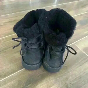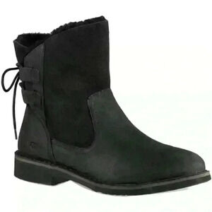 All the benefits of our Classic boot in a sleek, everyday silhouette, the Naiyah features soft nubuck leather (pretreated against water and staining) and warm wool lining. Nubuck leather and Twinface sheepskin. Pretreated to repel water and stains. Functional back lace closure. 7.5" shaft height. Size 8.5. In good preloved condition some faint discoloration on suede, could use some conditioning