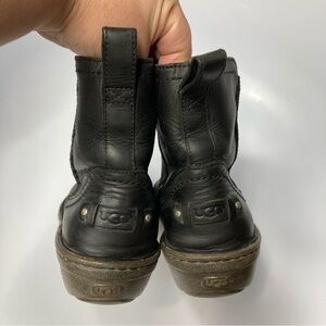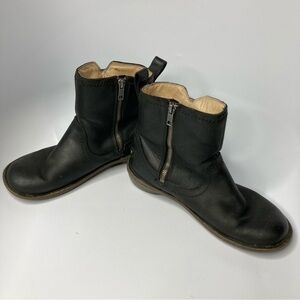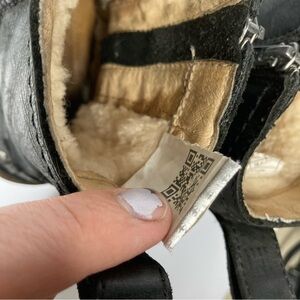 The one boot has some tiny white dots on the toe area. Please see additional pictures. Overall, very good preowned condition!