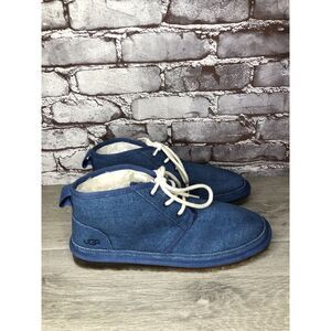 UGG Neumel Blue Fabric Fur WHT Lace Up Chukka Boots Men Sz 43EU/10M US 1117613