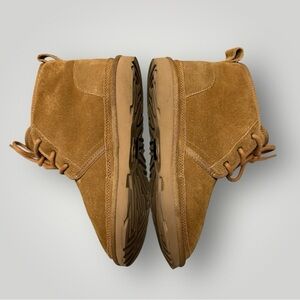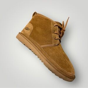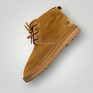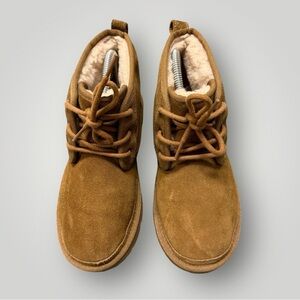 Warm and soft, our best-selling kids' Neumel II Boot features an UGGplush wool lining to keep your little one cozy. This suede chukka boot is built to move how kids do, with a rocker-bottom shape for a barefoot feel and our ultra-lightweight outsole. Pair our kids' chukka boots with our adult sizes to extend the style to the whole family. This kids' lace up boot is available in a range of dark and light neutral colors.