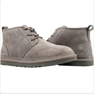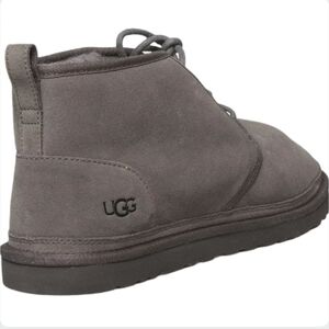 Authentic men's UGG Neumel boots in versatile charcoal gray. These cozy ankle boots feature premium suede uppers, plush sheepskin lining for ultimate comfort, and the iconic UGG traction outsole.