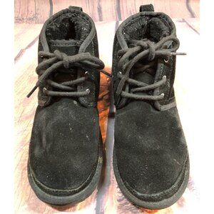 UGG Neumel II Black Suede Lace Up Bootie Lined Youth Kids Boys 5 / 37 (i8j)