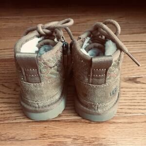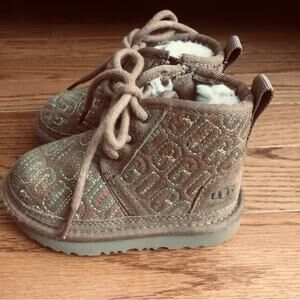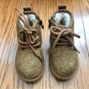 UGG Neumel II Graphic Stitch Brown Bootie Zipper Closure Toddler Girl Size 6