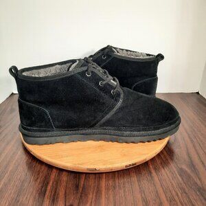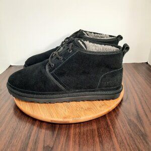 UGG Neumel Mens Size 13 Chukka Boots Black Suede Leather Shearling Lined $150. Excellent Pre Owned Condition.